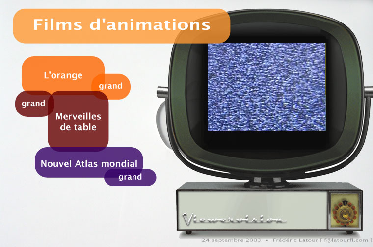 À voir également : Accueil | Album de France | Album de Montréal | | ENGLISH | Merveilles de table (grand) | Nouvel Atlas mondial (grand) | L'orange (grand) | Le lecteur QuickTime (gratuit) est requis pour visionner les films.